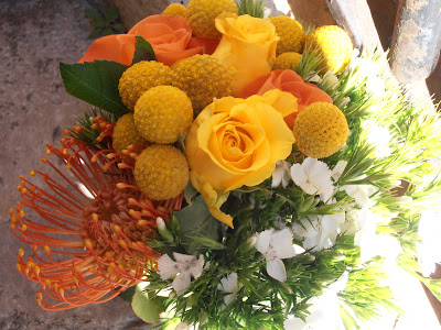 flores - rosas, buvardia, pompom (craspédia) e protêa.