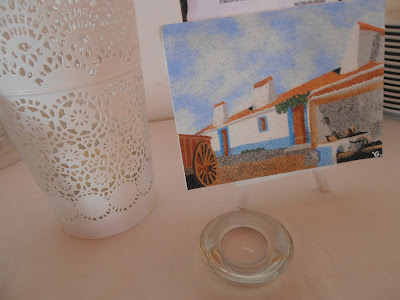 uma das experiências mais complicadas, aqui pelo Alentejo e tendo em conta as condições, ou a sala é mesmo boa ou, caso mais vulgar, tem que se recorrer a uma tenda. Se é o caso, atente em algumas dicas - tecto forrado, o sol é implacável, entre as 11h e as 18h é impossível ter uma sala decentemente climatizada. Não arrisque ter os seus convidados a suarem em bica. A tenda não deve ser fechada e esqueça as moscas - esta ou não no campo ? existem bichinhos certo ? então esqueça o assunto. Invista nuns climatizadores/ventoinhas fantásticas que borrifam o ambiente e deixam uma agradável sensação de frescura. Isto sim é criar um ambiente especial. Os fornecedores de tendas adoram uns candeeiros de mil luzes que deixam as tendas com aspecto de laboratório ou a chamada "luz de talho", peça para desligarem algumas lâmpadas e invista em iluminação de velas, vai ver como uma vulgar tenda se transforma numa sala acolhedora e intima. Por último esqueça a alcatifa (mais uns euros de poupança) não serve para nada, depois de se instalarem 10 mesas o espaço visível é mínimo e evitará muitos tropeções de Loubotain. Só para terminar este tema, por muito que se trabalhe a decoração dum espaço destes, não transija num detalhe - as cadeiras ! podem arrasar todo o investimento, na nossa modesta opinião, se não conseguiu arrecadar uns euros para a elegante cadeira de madeira, mais vale deixar a cadeira plástica tal como ela é. As fotos dizem tudo, capas amarrotas e mal vestidas e uma sala tão branca, tão branca que quase se diria que estamos numa enfermaria e até mesmo essas hoje em dia, vivem de cor ! Sem medo deixe a cadeirinha à mostra vai ver que o efeito é bem melhor.